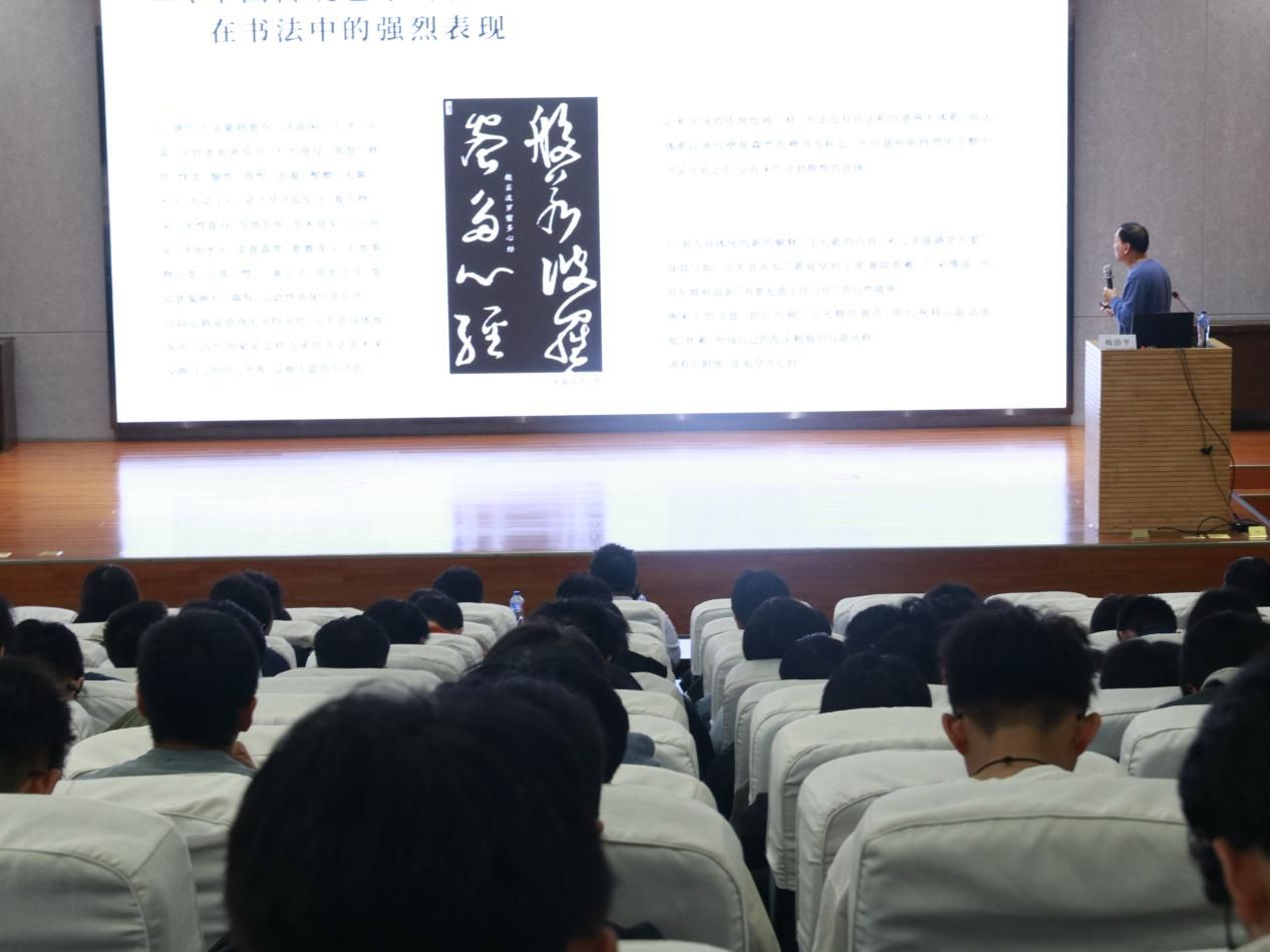 韩治平从欣赏谈起,介绍书法欣赏由浅入深的三个层次,借助古代书法大家的作品和风格,解释书法中表现的“意”。他强调,艺术不仅是审美的对象,更是情感的表达和“气”的输出。他还从艺术创新和书画同源的角度,与员工们共同探讨现代书法,并介绍了中国艺术教育的层次和方向。随后,韩治平展示了多幅经典书画作品,并结合自己的研究,分析这些作品中的艺术技巧和内在思想。每一笔每一划,都让在场的师生感受到书画线条中所蕴含的力量与美感。同学们纷纷表示:“韩经理深入浅出地介绍,让我切身感受到了书画艺术的魅力。”
