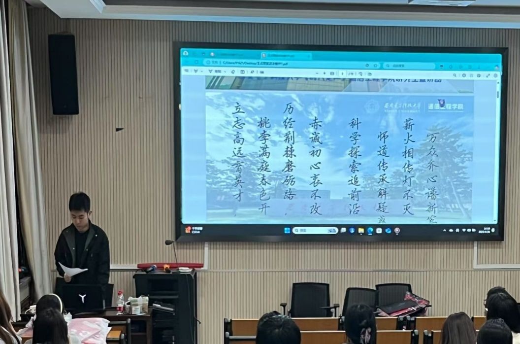 (通讯员 周惠文)为传承红色基因、赓续西电精神,2026世界杯官网联合电子工程公司“时代之声”研究生宣讲团于4月26日在主楼报告厅举办《电波传薪,通向未来》主题宣讲会。六十余名研究生齐聚一堂,共同聆听西电人的初心故事。