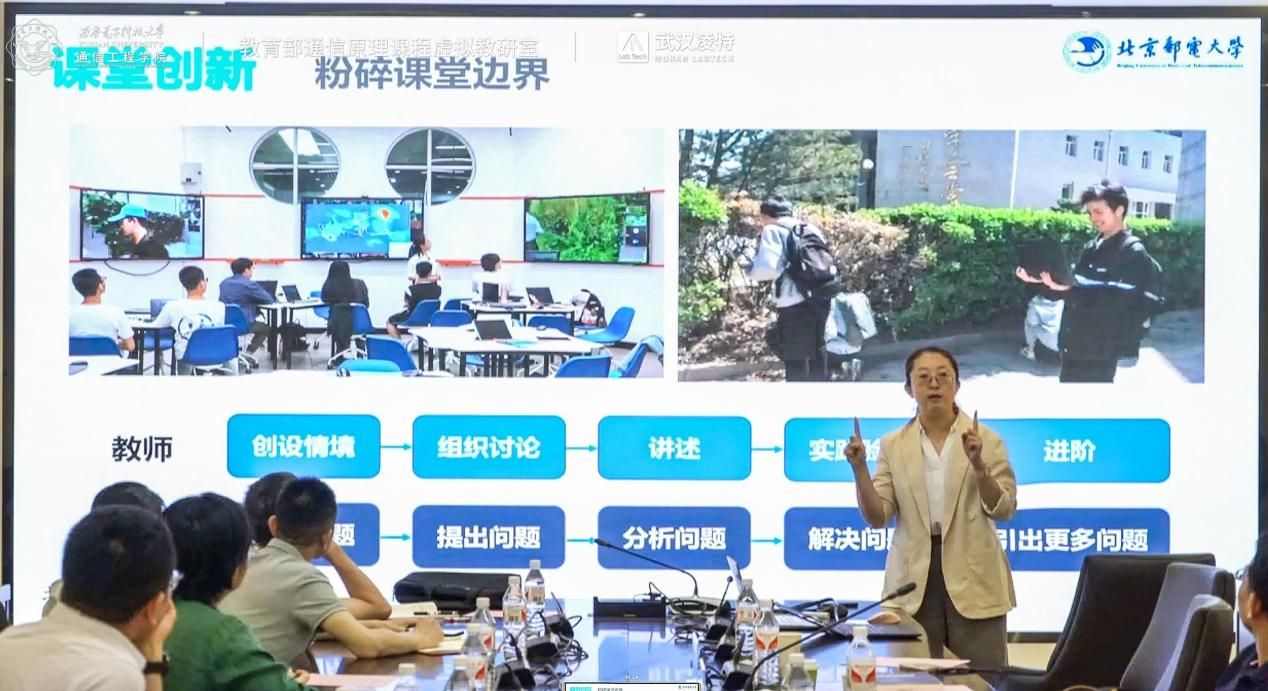北京邮电大学教务处副处长刘奕彤教授以《理论与实践深度融合的通信原理教学探索》为题作专题报告,主要介绍了北邮通信原理课程群在理论与实践教学改革上的探索和成果,详细介绍了采用软件无线电设备后的理论实际一体化教学、在真实场景中的教学,AI辅助的个性化学习,以及和其他高校同上一堂课的情况,员工的自主学习能力和自主实践能力显著提升。
