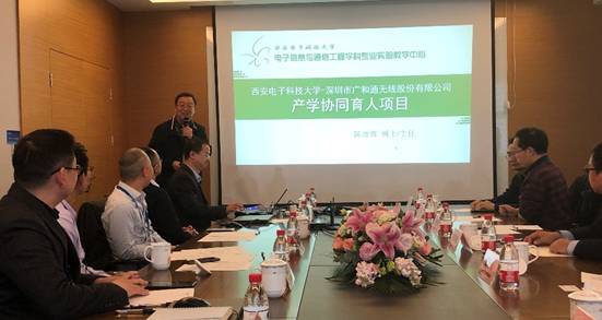 西电教务处副处长张宇鹏处长致辞中,首先肯定了广和通作为首家A股上市的无线通信模块厂家的研发实力,同时西电的通信学科在教育部的第四轮学科评估中评得A,双方的合作,强强联合当之无愧。双方响应国家号召,积极进行产教融合、产学合作。由于当前的人才培养供给侧、产业需求侧在结构、质量、水平方面存在一定偏差,新工科建设,正是要把教育、人才、产业有效衔接,消除偏差。张宇鹏处长希望双方充分发挥各自的优势,建立一种长期的、可持续的、互利互惠的合作关系,邀请广和通更多参与到西电的校企活动,期望广和通更多的走进西电进行校企交流。