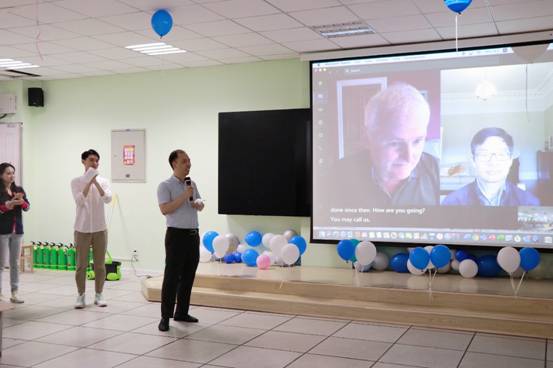 首先顾华玺教授幽默风趣地向新生一一介绍了各位老师,同学们掌声连连。Steve Mclaughlin 经理通过远程视频对中英班的新同学表达祝贺和欢迎。