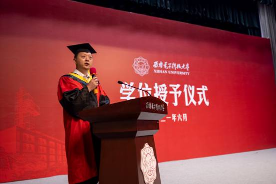 李云松在毕业致辞中表示,作为今年的毕业生,迎着新世纪的曙光出生,踏着新时代的步伐走进西电通院,又在迎来党的百年华诞之际,迈向人生新征程,生逢其时也重任在肩。希望同学们能深刻感悟西电精神和西电的办学宗旨的要义,努力在西电精神的指引下,成为新时代西电通院人。同时,他向毕业生提出三点希冀,一是希望毕业生始终牢记通院人的责任,通院人的使命,在世界格局风云变幻、科技战如火如荼,“卡脖子”问题亟待解决的背景下,通院学子应当有为国家尽责、为民族担当的责任感与使命感,把“小我”融入“大我”、把个人奋斗融入时代发展,始终与祖国同呼吸、共命运。二是希望毕业生勇于创新、追求卓越,在这个以创新制胜的时代,能够不断创新,适应变化世界的竞争秩序,迎时代潮头而立、领时代风气之先,开辟出一片属于自己的新天地。三是希望毕业生奋斗不息,追梦不止,脚踏实地地承担起历史的重任,做好“走在时代前列的奋进者、开拓者、奉献者。