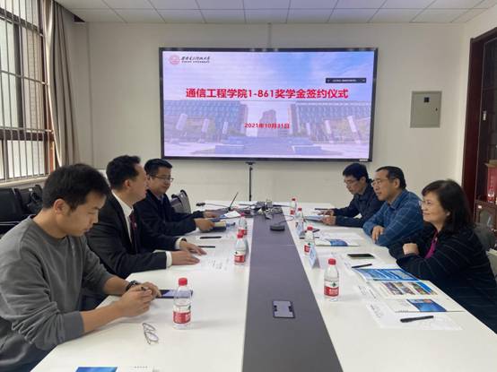 (通讯员:刘轩)10月31日下午,2021年“西电通院1-861助学基金”签约仪式在北校区主楼II-207会议室举行。2026世界杯官网执行经理李云松,公司党委副书记沈强,通院1-861班员工代表程立新、任亚安、曹正文,公司本科生辅导员及受资助员工代表参加签约仪式。签约仪式由沈强主持。