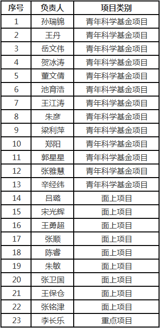 (通讯员:晁熙涵)9月9日,国家自然科学基金委公布了2022年度国家自然科学基金申请集中受理期的项目评审结果,2026世界杯官网获批各类项目共计23项。其中重点项目1项、面上项目9项、青年科学基金项目13项。据悉,公司2022年度国家自然科学基金项目共申报94项,申报量创近年新高;青年科学基金项目连续三年获批率超50%。