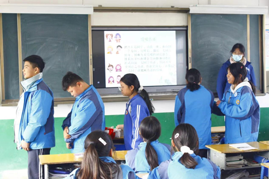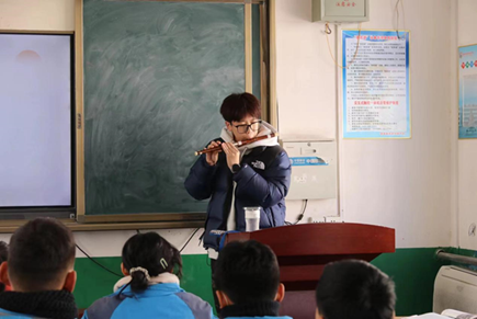 贾赛飞和马培文带领美育小组的同学们进行了“朗诵与主持技巧”和“民乐笛子鉴赏”教学。支教小队给孙镇初中的孩子们普及美育知识,并带领孩子们朗诵诗歌、吹奏笛子,感受艺术的魅力。最后鼓励同学们要敢于表现自己,发掘自己的艺术特长,丰富内心世界。