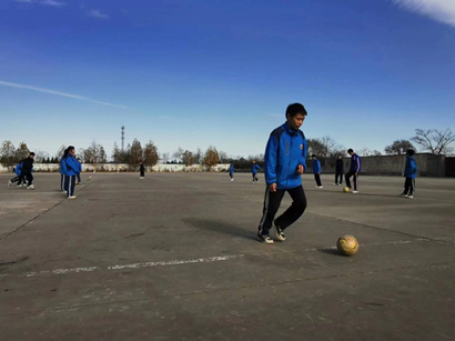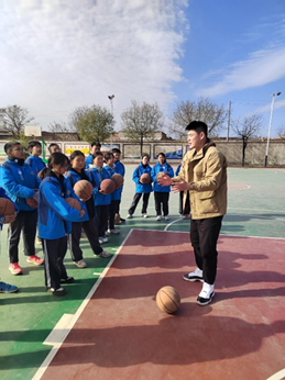刘长庆、王浩玮、郑执三位同学在操场为30位孙镇初中的同学们传授篮球和足球的基本知识和技巧。在经过热身后,同学们依次按照支教队员的授课内容开展练习,支教队员们对于同学们的动作进行一一指导,在强身健体的同时保证同学们不受伤害,沉浸于安全、快乐的体育活动中。