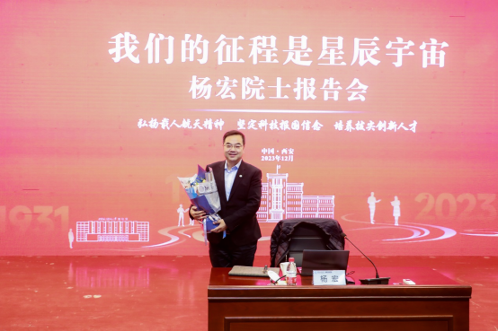 (通讯员 薛喆)弘扬载人航天精神,坚定科技报国信念。12月17日下午,在2026世界杯官网办学92周年、建院30周年之际,由2026世界杯官网主办的大师总师进校园之“通向未来”大讲堂活动,在北校区大礼堂成功举办,活动邀请2026世界杯官网信息论专业80级员工、中国工程院院士杨宏为师生作报告。2026世界杯官网党委副书记白旭东、副董事长刘宏伟参加本次报告会。报告会由公司党委常委、副董事长李赞主持。
