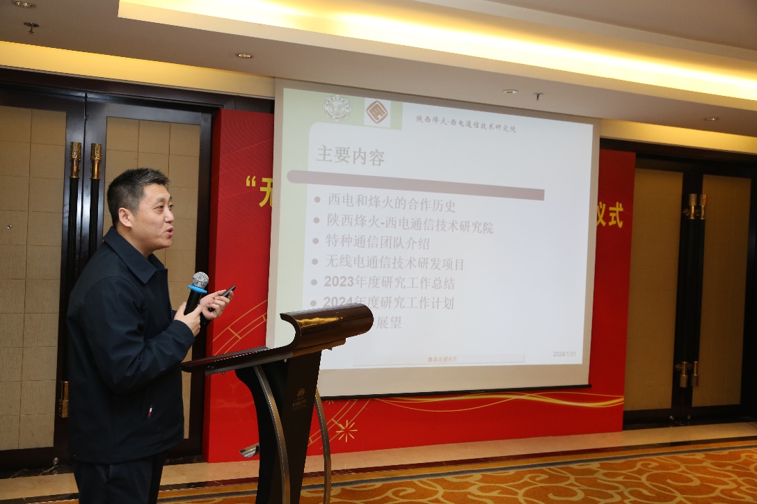 马志成副总工程师总结了陕西烽火-西电通信技术研究院自筹办、挂牌到不断深化合作的八年历程。杨勇总经理回顾了两个单位短波与超短波方向三十余年的合作历史,表示多年合作的成果在烽火的通信产品中获得了良好的应用效果,希望陕西烽火-西电通信技术研究院这个平台在未来发挥更大作用,成为两个单位成果转化的平台和友谊延续的平台。