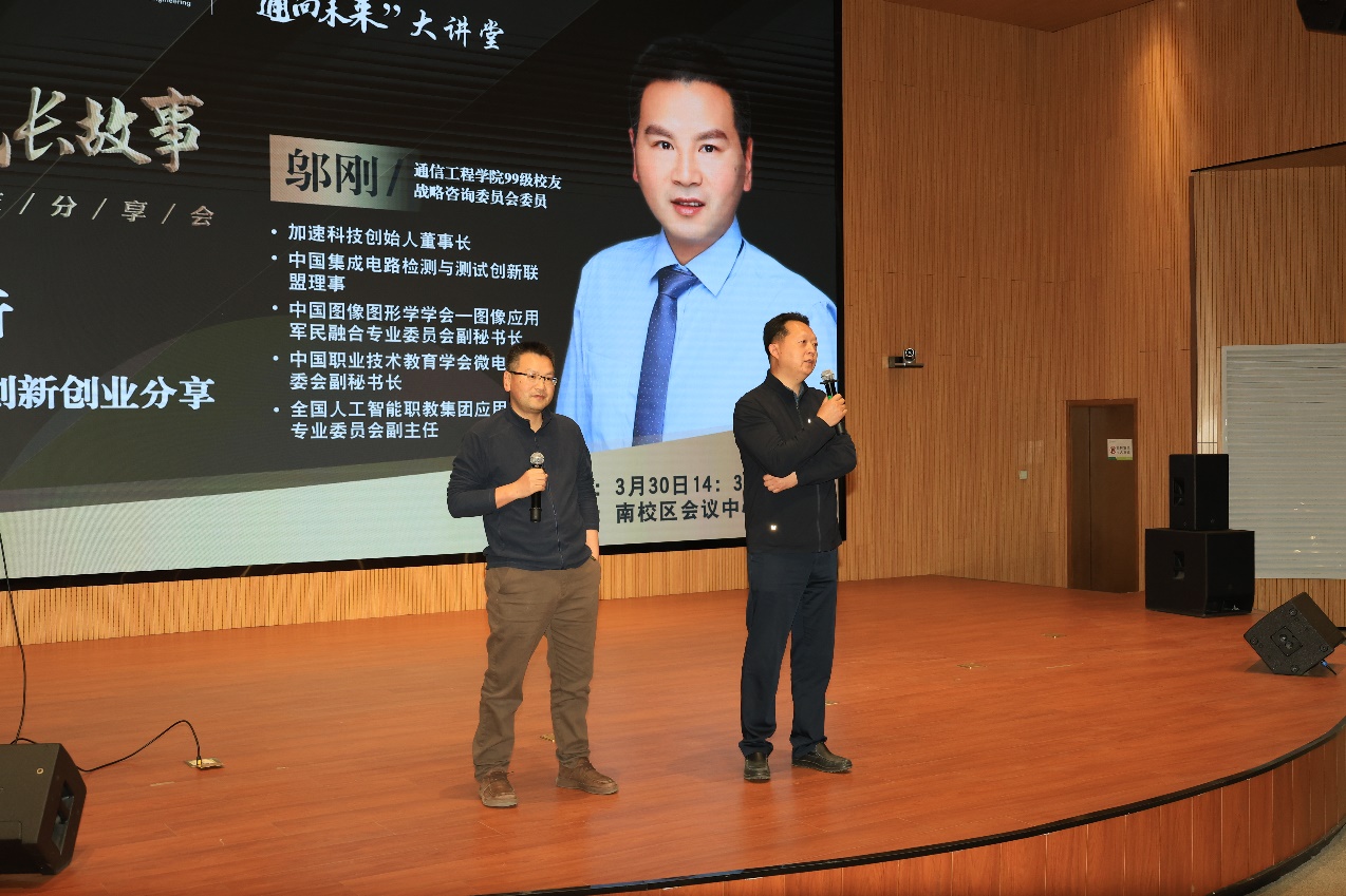 邬刚以《加速前行——创新创业分享》为题,为师生们讲述了既接地气又有干货的个人成长故事。在西电丰富多彩的校园生活,为他打下了夯实的专业基础,也种下了日后不断“折腾”的创业种子。毕业后从事FPGA领域工作,在华为公司中从研发岗位到市场经理的过程,磨砺他不断求变不断前行的性格。而创业路上的磨难和艰辛,让他依然保持着敏锐与十足的精力。