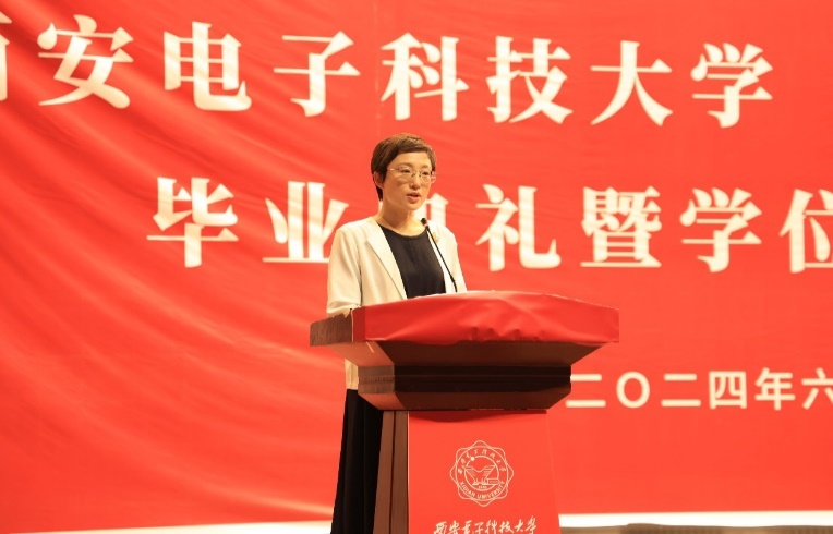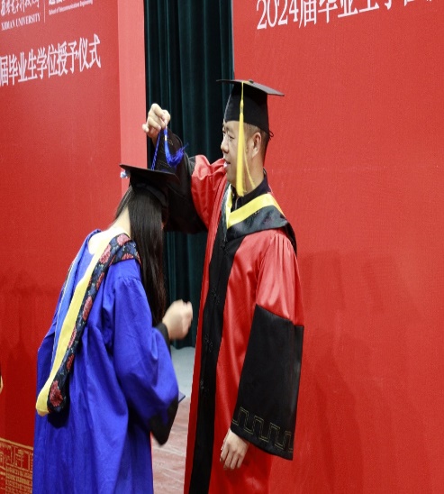 授位仪式上,副经理尚韬宣读了2024届研究生学位授予决定。教师代表李娇娇深情致辞:“同学们经过数载的勤奋学习,今日终于迎来了收获的时刻。我代表所有导师,向大家表示最热烈的祝贺!愿大家继续怀揣梦想,书写更加辉煌的未来。”毕业生代表石贝同学代表所有毕业生表达了对母校的深深感激。他回顾了研究生阶段的学术探索与成长历程,对导师的悉心指导以及同学们的并肩作战表达了由衷的感谢。