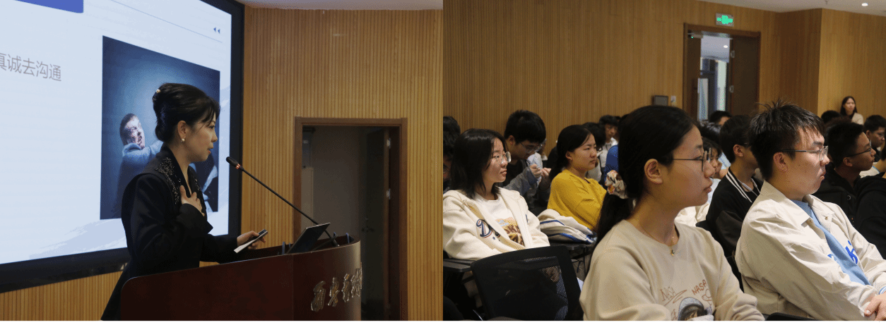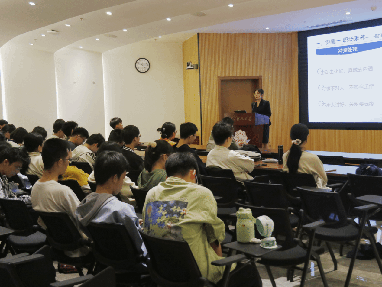 活动伊始,王秋霞与同学们通过一系列小游戏进行破冰,迅速打破陌生感,营造了轻松愉快的氛围。随后,王秋霞以富有感染力的语言,向同学们“倾囊相授”职场素养与基本礼仪。在传授第一个职场素养“锦囊”时,她通过《西游记》五人形象等生动例子,详细解释了时间观念、情绪管理、积极反馈、专注敬业、知行合一等职场素养的重要性和注意细节,指导同学们正确看待和处理人际交往间的冲突问题。员工们认真聆听,并积极参与互动,受益匪浅。在传授第二个基本礼仪“锦囊”时,她借助公司内发生的实例,采用问答互动形式,使同学们身临其境感受到电话礼仪、短信礼仪、汇报礼仪、沟通礼仪等处理细节。