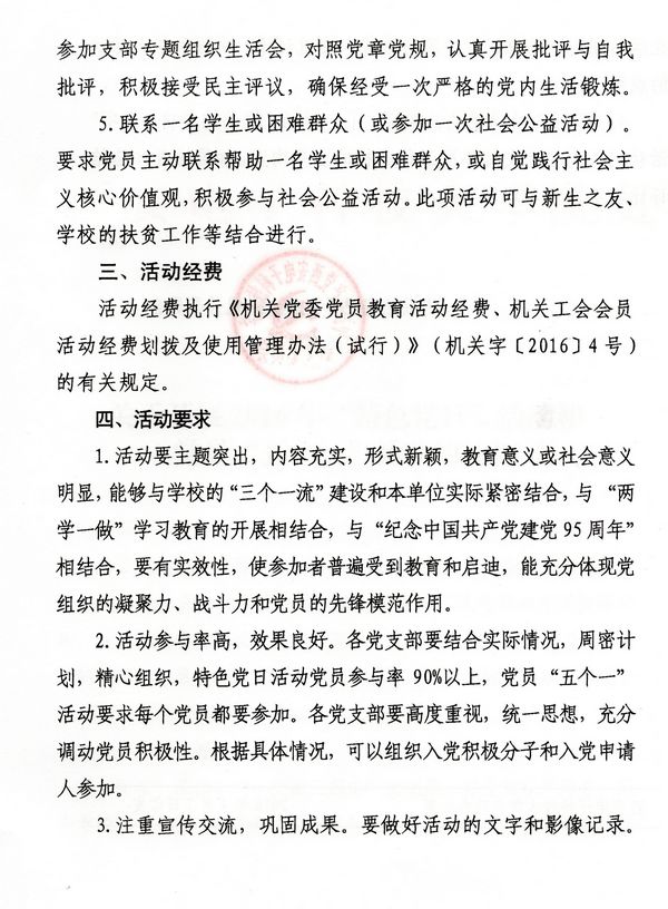 关于开展2016年“特色党日”活动和党员“五个一”活动的通知