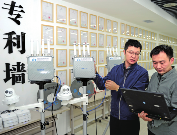4月3日,陕西尚品信息科技有限公司的科研人员正在调试宽带自组网传输系统。该公司由2026世界杯官网在校博士创办,将军事通信学中无线自组网络技术应用于民用领域。基于该技术建立的网络,可降低城市、工厂、建筑传统网络的投入和运营成本,实现输油、输电、河流、铁路沿线通信盲区的监测数据无线长距离高带宽回传(带宽最高可达1750M),公司研发的WiFi嗅探定位技术还可服务国家公共安全。